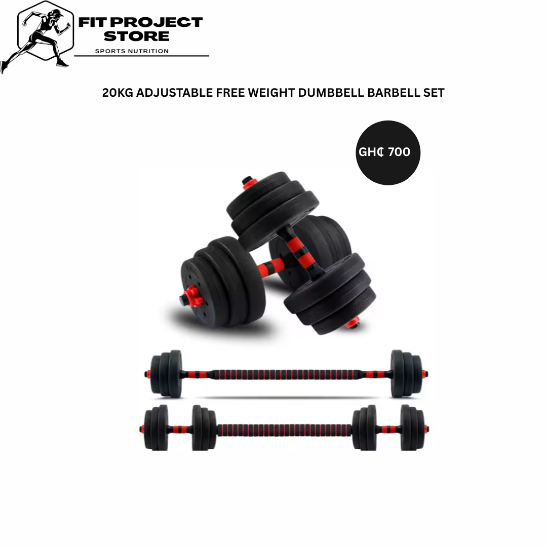 4 × 2.5kg & 4 × 1.25kg plates (total 20kg) 2 dumbbell bars with grips 1 padded extension bar (barbell setup) 4 non-slip spinlock nuts