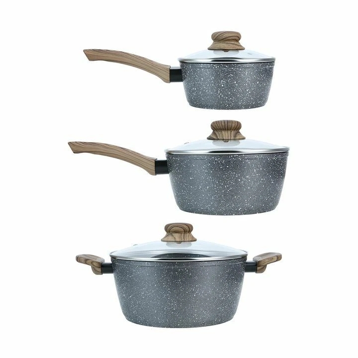 anko 3pcs wood look Non-stick cookware set with glass lids