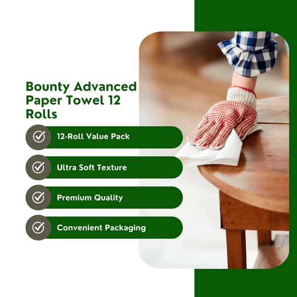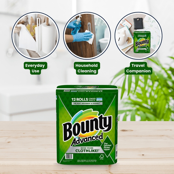 Bounty Advanced 2-Ply Paper Towels White 101 Select-A-Size Sheets 12 Count The Quicker Picker Upper loves when life gets a little messy. With strength and absorbency built into each sheet, Bounty Advanced Paper Towels come in clutch for speedy cleanups. Dont let spills slow you down, Bounty Advanceds got you covered.