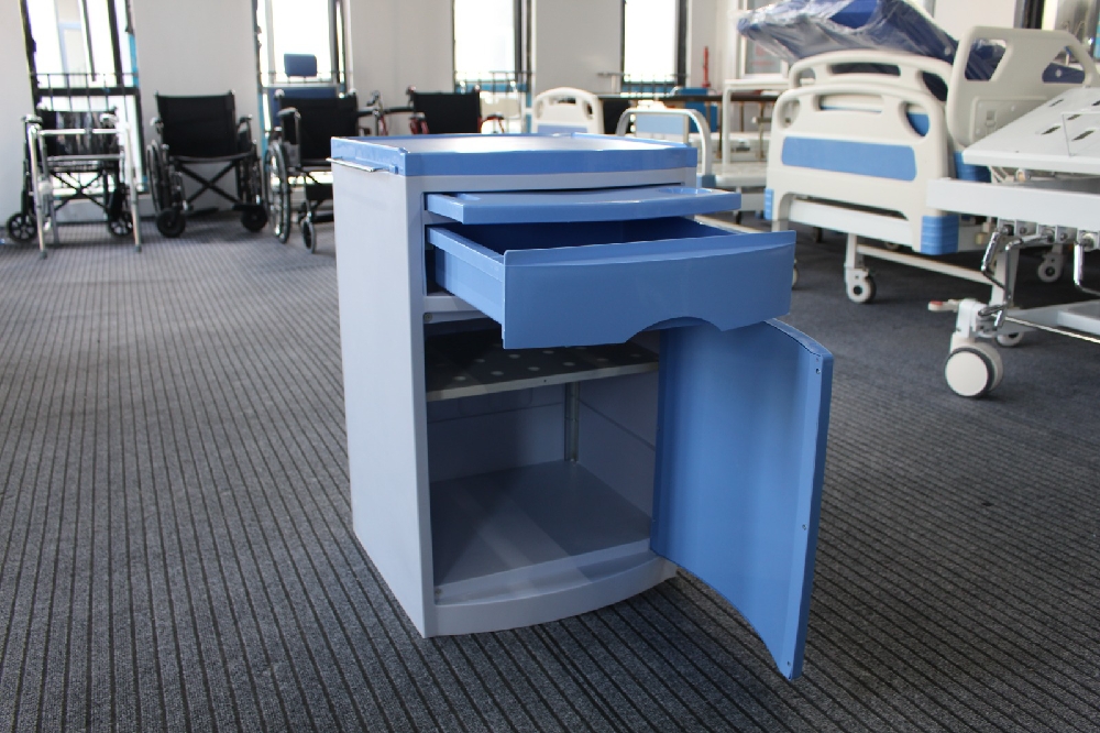 Upgrade your healthcare space with this premium Hospital Bedside Cabinet, designed for convenience and durability. Featuring a smooth, easy-to-clean surface, it includes a spacious top drawer, sliding utensil tray, and large lower cabinet for secure storage of personal or medical items. Its sleek blue and grey design complements any hospital or clinical setting. Perfect for patient rooms, wards, or nursing homes.