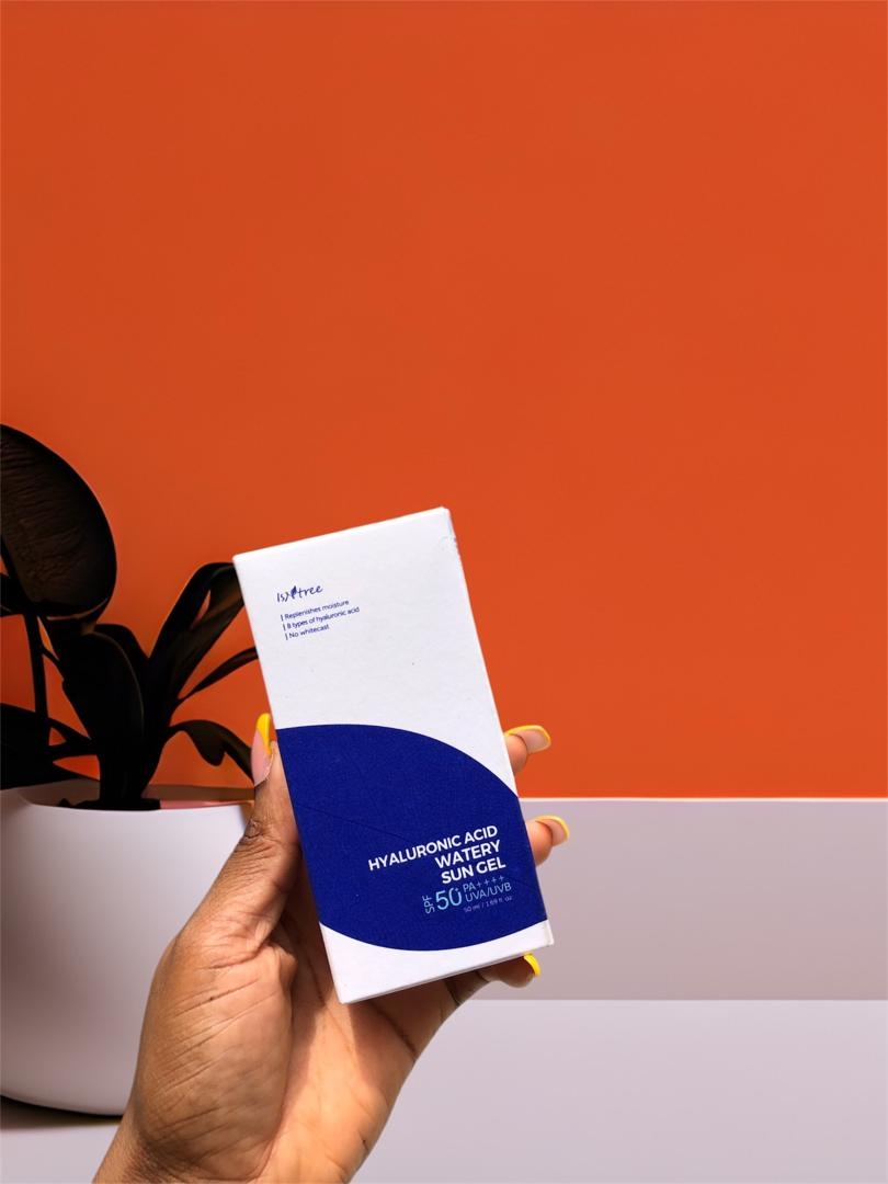 - ISNTREE Hyaluronic Acid Watery Sun Gel is a lightweight and moisturizing sunscreen that can help protect your skin from sun spots, hyperpigmentation, dark spots and sunburn.