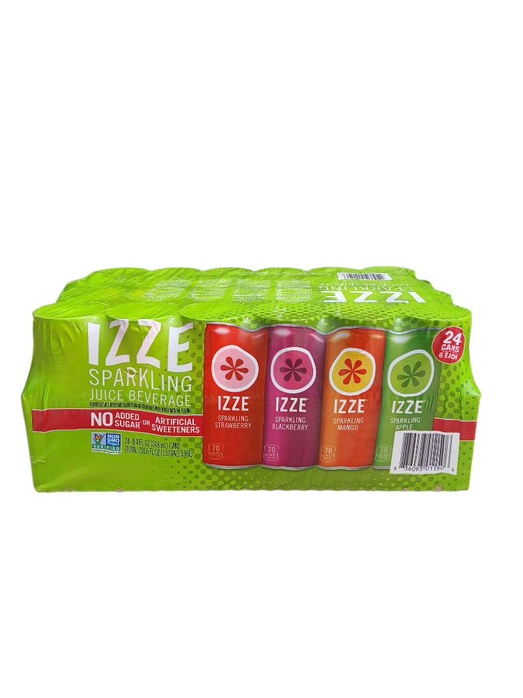 Keep your taste buds smiling with this IZZE Variety Pack of 24 sparkling juice beverage blend cans of 4 different flavors. Bubbly and fizzing awesome, it includes juicy and tangy Sparkling Blackberry, sunny and citrusy Sparkling Clementine, crisp Sparkling Apple and tart and refreshing Sparkling Grapefruit.Ideal for get-togethers with family and friends, the fusion of real fruit flavors and sparkling water creates an irresistibly bold taste that sets IZZE apart.