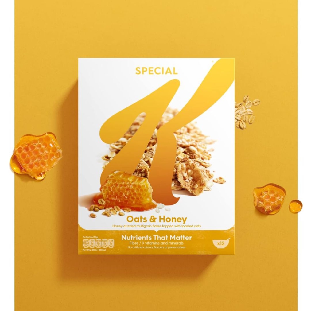 Start your day with Kellogg’s Special K Oats & Honey breakfast cereal. Kellogg’s Special K Oats & Honey breakfast cereal is made with honey-drizzled multigrain flakes topped with toasted oats.