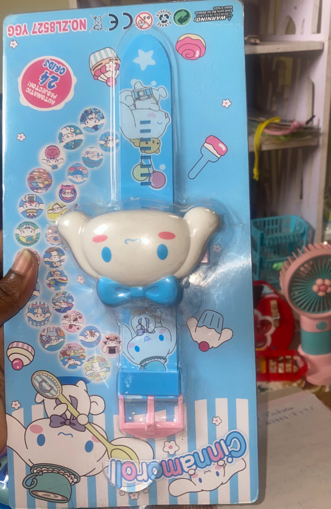 this watch comes with a projector with over 20 images which come be projected on the wall.