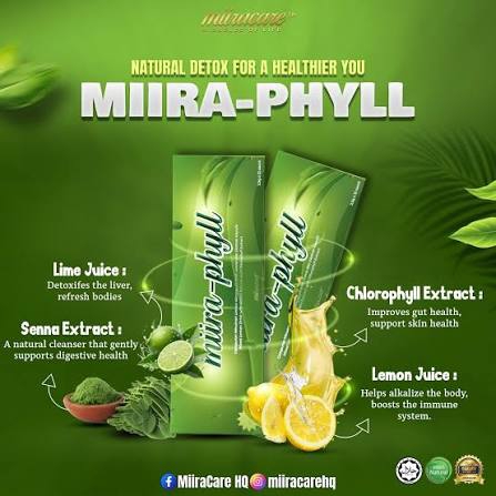 Miira Phyll is a powerful plant-based wellness drink packed with premium greens that help detox your system, support digestion, and boost natural energy. With just a daily dose, you feel lighter, fresher, and more active—perfect for anyone who wants a simple, natural way to stay healthy and energized.