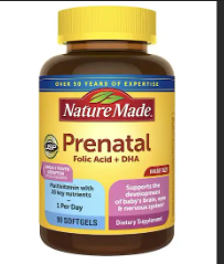 Nature Made® Prenatal Folic Acid + DHA Softgels can help support your nutritional needs plus the growth of your developing baby.â€