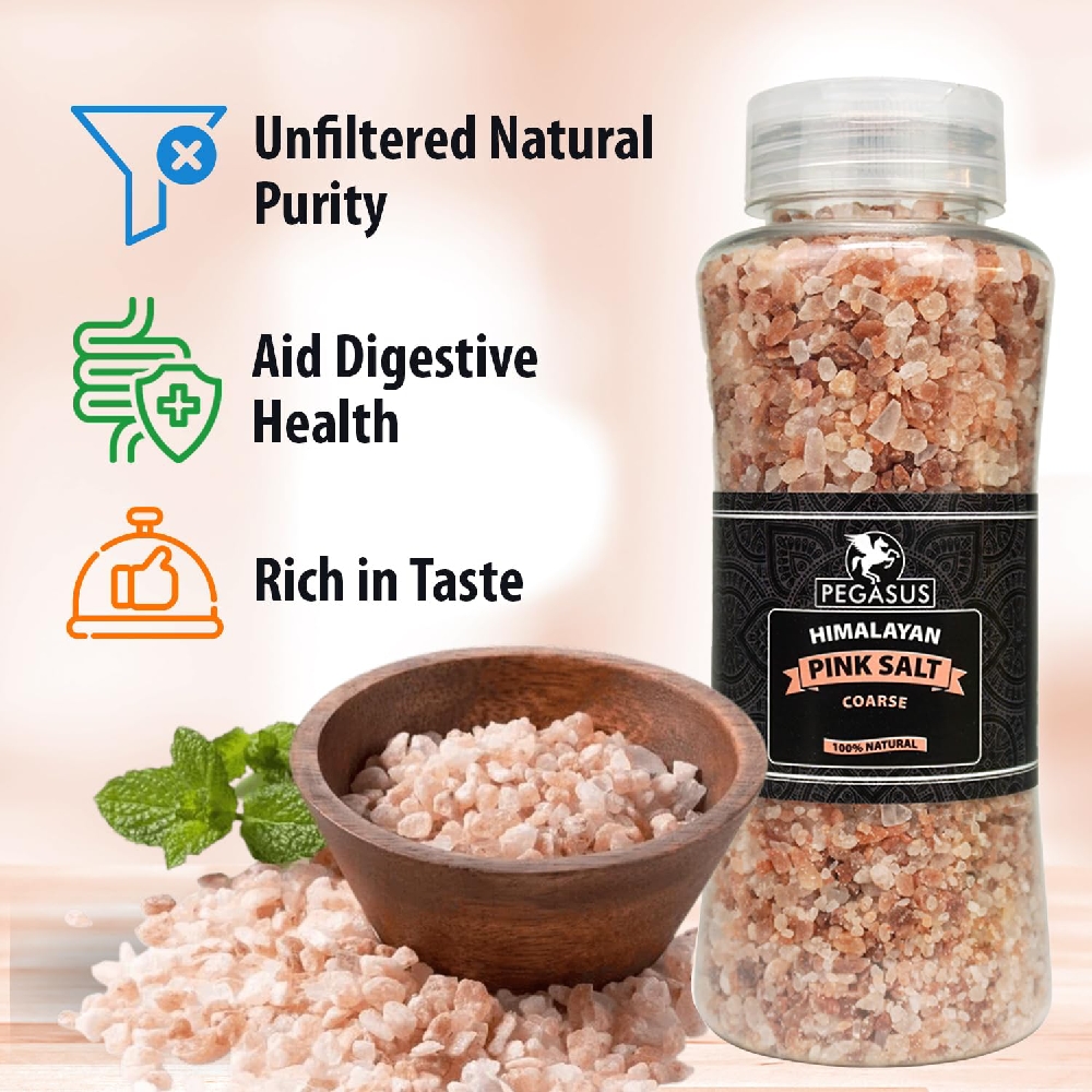 Pegasus Himalayan Pink Salt Coarse is a natural and unrefined salt that is sourced from the ancient Himalayan mountains.It is known for its distinctive pink color and coarse texture. This gourmet salt is rich in minerals and trace elements, which contribute to its unique flavor.Pegasus Himalayan Pink Salt Coarse is hand-mined and contains no additives or preservatives, making it an authentic and pure choice for enhancing the taste of your dishes. It can be used as a seasoning, condiment, or in cooking, adding a touch of exoticism to your culinary creations.