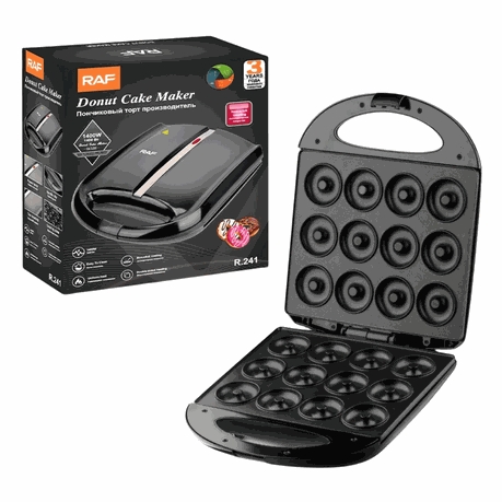 Raf 12pcs donut machine 1400w,non-stick coating, easy to clean, uniform, double-sided heating and easy to clean.