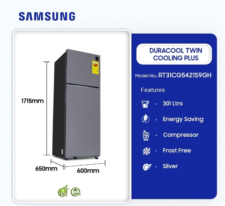 Samsung 301Ltr Duracool Twin Cooling Plus Refrigerator Silver