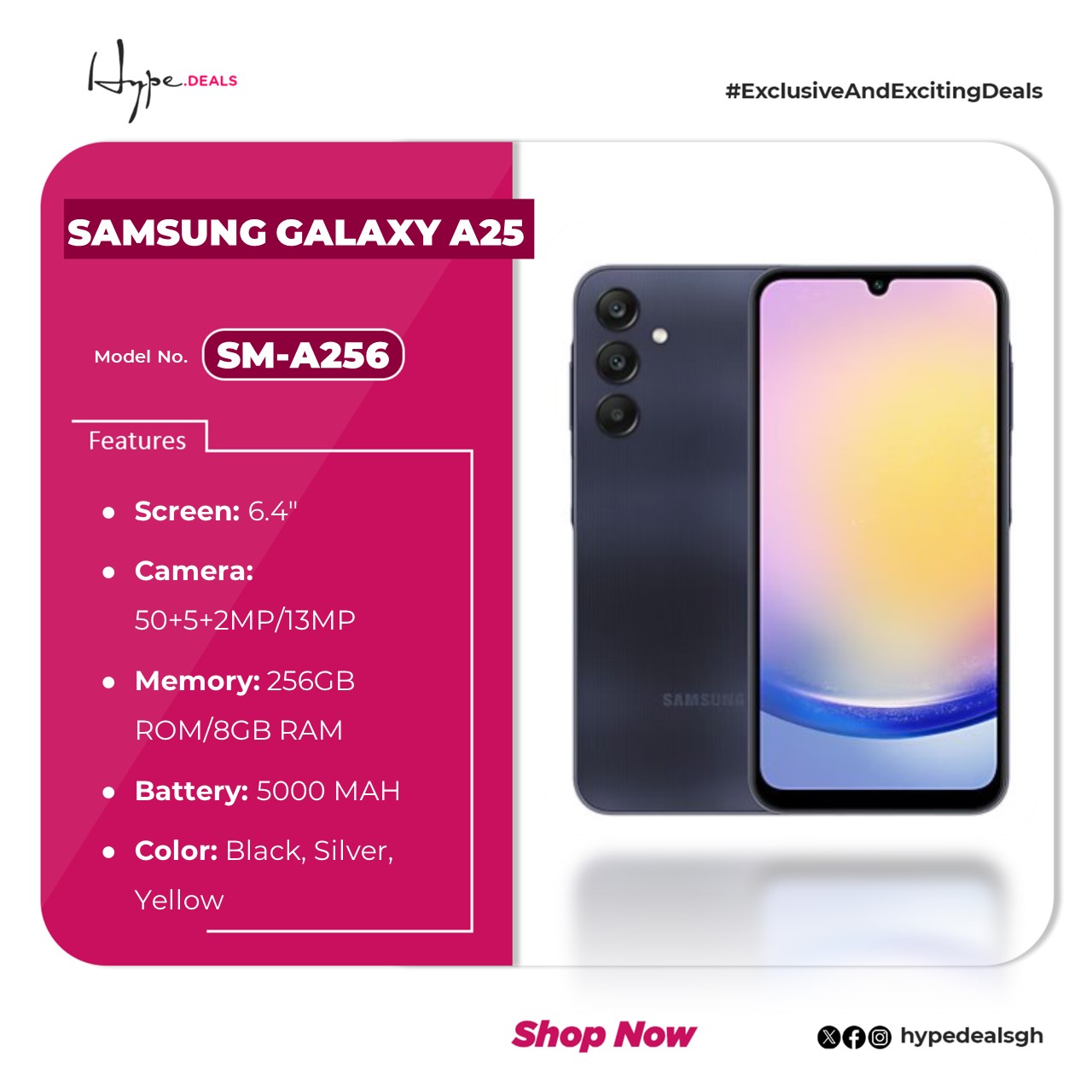 The Samsung Galaxy A25 5G features a 6.5-inch Super AMOLED display for vibrant visuals. Its triple camera system, including a 50MP main lens, captures detailed photos. With 8GB RAM, 256GB storage, and a 5,000mAh battery, it ensures smooth performance and extended usage.