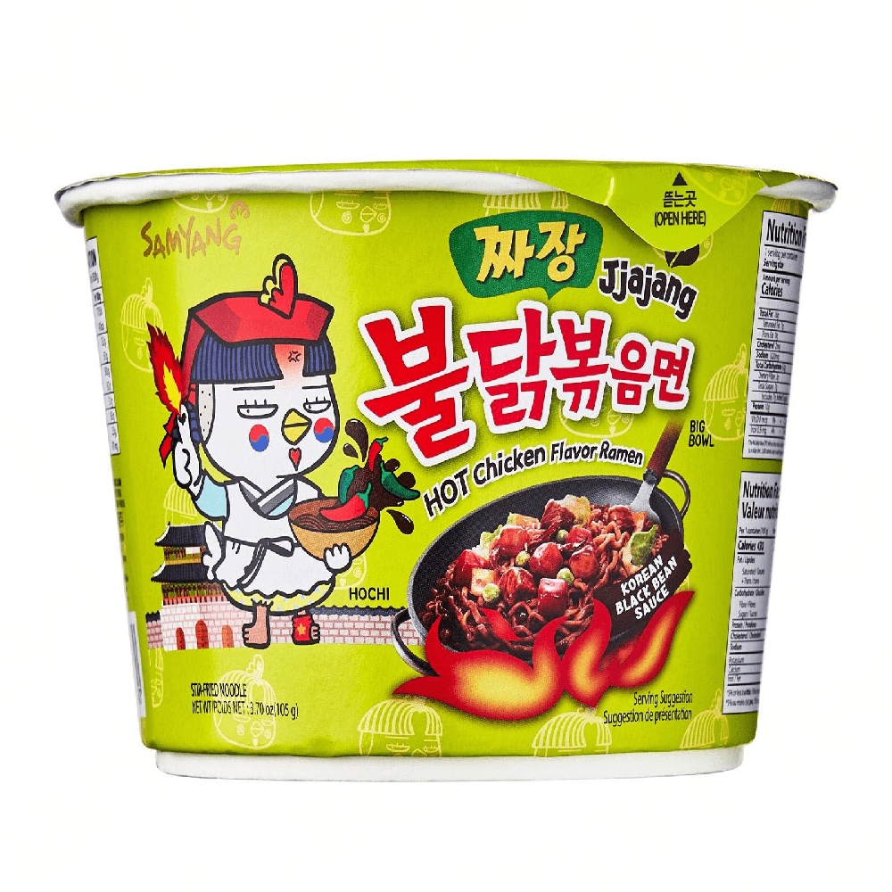 Satisfy your craving for bold and spicy Korean cuisine with the SAMYANG Jjajang Buldak Chicken Flavor Ramen Big Bowl. This delightful dish combines the savory goodness of black bean sauce with the fiery kick of Buldak chicken flavor.