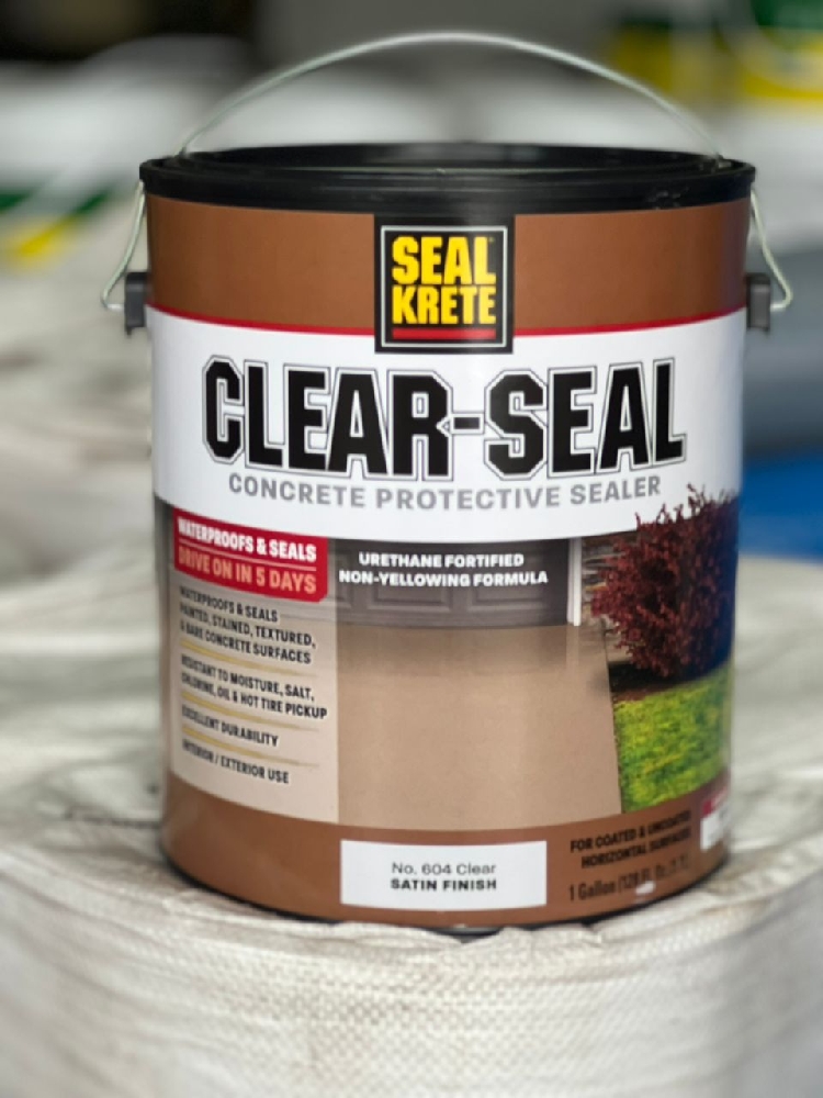 SEAL-KRETEĀ® Clear-Seal Concrete Protective Sealer is a ready-to-use premium sealer that penetrates deeply to seal and protect painted, stained or bare concrete. It goes on milky white and dries to a clear finish, enhancing the natural character of your surface. Clear-Seal is a durable urethane-fortified acrylic sealer with low odor, and low VOCs, so itās easy to work with and safe for the environment. It has excellent chemical resistance and repels stains, making it ideal for pool decks, patios, porches, driveways, garages or anywhere you want to protect and beautify painted, stained or bare concrete. Available in satin or gloss sheens.