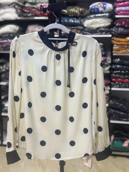 This innovatively designed polka dot top for ladies it completely stunning. With a stunning pattern, it still manages to stand out due to its classy design. It matches well with many different trousers, shoes,bags,skirts and other accessories as well. It is available in various sizes as such we are sure you will definitely find one that fits you perfectly. Rush now and order yours directly from the retailer now.