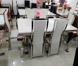 This dining table features tempered glass construction for ease of cleaning. The tempered glass dining table is not affected by indoor air and won’t deform due to unsuitable humidity. In addition, it is healthy, environmentally friendly and no radiation.